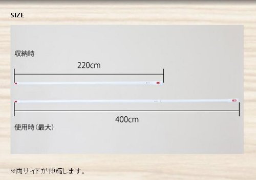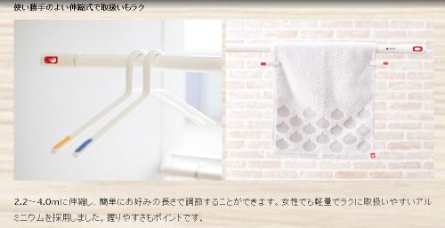 ●ありそうでなかった真っ白な物干し竿。選べる長さは3タイプ。伸縮機能付。アルミニウム採用で軽量、女性でもラクラク扱えます。