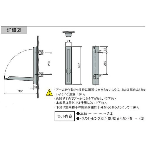 - セット内容:本体2本 トラスタッピングねじ(SUS) φ4.5×45 4本
