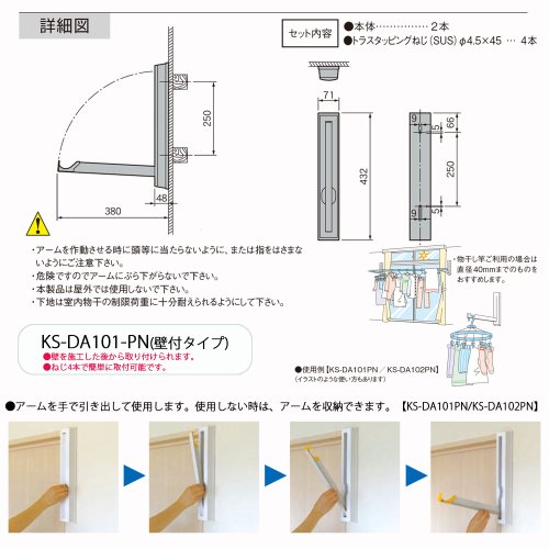 ナスタ(NASTA) 室内物干 壁付タイプ KS-DA101PN シルバーグレー 2本1組