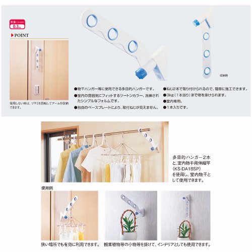 - 3kg(1本当り)まで物を掛けられます。