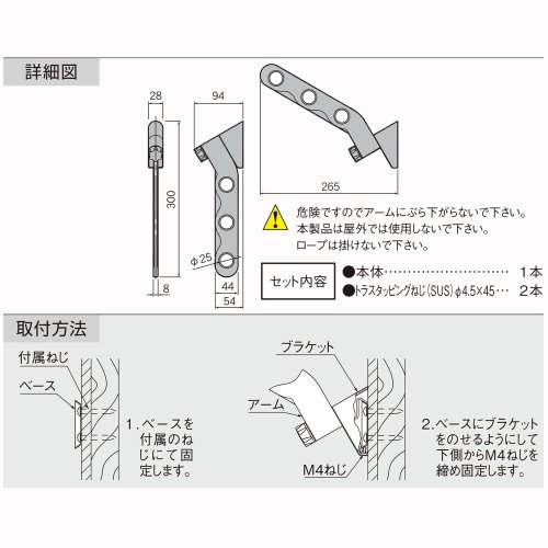 - セット内容:本体1本 トラスタッピングねじ(SUS)φ4.5×45 2本