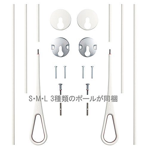 - 物干金物のエアフープは天井下地取付仕様。ポールの長さはS・M・Lの3種類同梱しています。清潔感のあるホワイトカラーにグレーのアクセントカラー・シンプルなデザインでお部屋になじみます。耐荷重8kg/本まで。