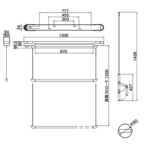 ナスタ(NASTA) 昇降式室内物干 AIRBAR KS-NRP023-12WBKW 天井取付タイプ 紐白 本体: 高さ120cm