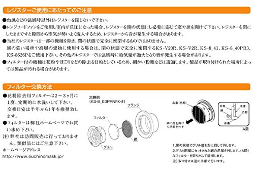 - ●防虫網付。(ABS樹脂成形網) ●前面パネルが取り外せますので、フィルター等、内部の清掃が容易です。お手入れ方法花粉除去用フィルターは2~3ヶ月に1度、定期的に水洗いしてください。交換の目安は半年から1年を推奨します。