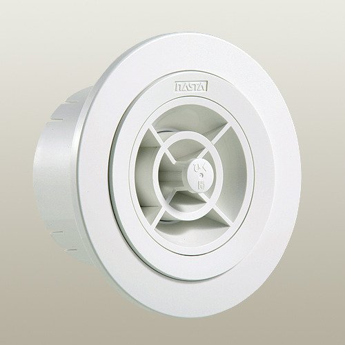 室内側換気口レジスターとしても、多目的スリーブ用キャップとしても使用可能な丸型レジスター。【特長】・直径75用レジスターです。・室内側の給気口にご使用ください。・レジスター羽根(開閉)部分を取り外すと多目的スリーブとしても使えます。・防虫網付。※適用パイプ SU75(内径75)【使用方法】・お部屋内側の給気口レジスターです。・羽根部分を取り外すと多目的スリーブとしても使えます。