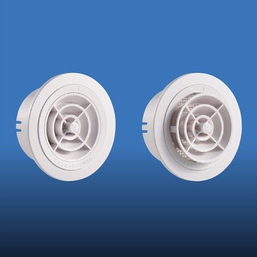 室内側換気口レジスターとしても、多目的スリーブ用キャップとしても使用可能な丸型レジスター。【特長】・径100用レジスターです。・室内側の給気口にご使用ください。・レジスター羽根(開閉)部分を取り外すと多目的スリーブとしても使えます。・防虫網付。