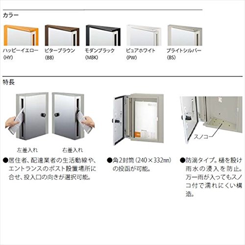 ●●住居者、配達業者の生活動線や、エントランスのポスト設置場所に合わせ、投入口の向きが選択可能●角2封筒(240×332mm)の投函が可能●防水タイプ