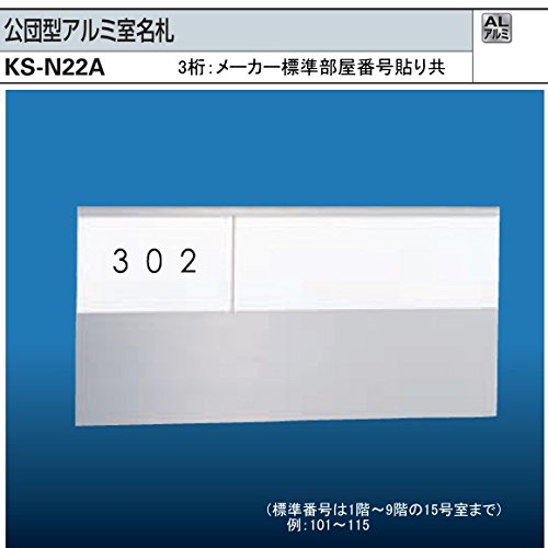 ナスタ 公団型アルミ室名札 KS-N22A(部屋番号付き) 125x250。3桁のメーカー標準部屋ナンバー貼り付けて出荷します。