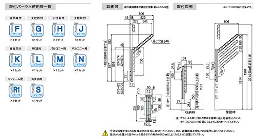 ●洗練されたフォルム・上下移動式物干の決定版。(ベリーショートタイプ) ●4段階(150mmずつ)の上下移動ができます。 ●アームをポールへ垂直に収納できます。