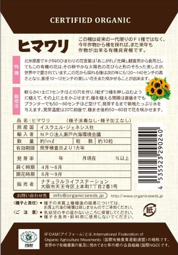 ●栽培時に農薬や化学肥料を使わずに育成されているので種も健康です。有機種子は自家採種ができる、持続可能な栽培になくてはならないものです。