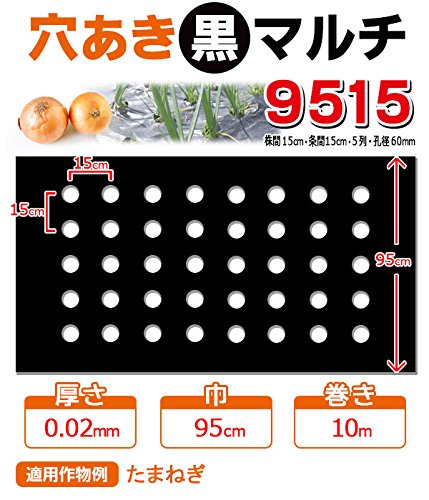 【マルチ】 穴あき黒マルチ9515 玉ねぎ用 (孔径が60mm) 10mにつき486円 【メール便(送料90円)配送商品】