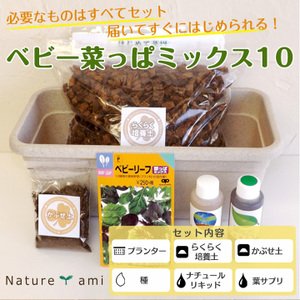 【ベビー菜っぱミックス10 菜園セット】 必要なものはすべてセット!初心者からお子様向けでカンタン。 誰でも簡単に短期間で収穫できます!