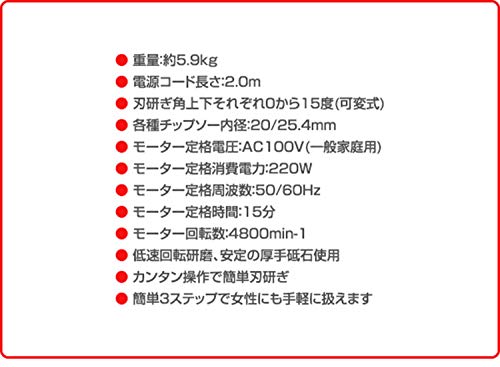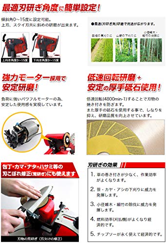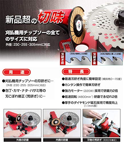 用途 草刈用チップソーの再研磨用(外径230・255・305mmに対応) 電動丸鋸用チップソーの再研磨用(外径160~190mmに対応) ハサミ・包丁の刃こぼれの修正(荒用)