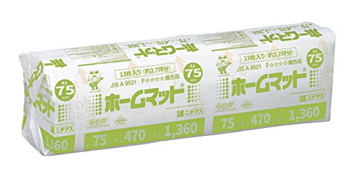 ロックウール 吸音断熱材 ホームマット 厚さ75x幅470x長さ1360ミリ 13枚入/約2.7坪数