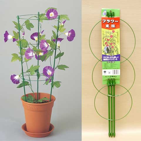 - 朝顔などのつる性植物に、組み立て簡単な使えるワンタッチパッカー式フラワー支柱です。