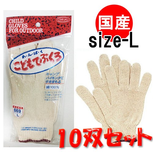 こども用純綿手袋(こどもてぶくろ)Lサイズ10双セット!キャンプ・ハイキング・運動会に大活躍!お子さまの手をしっかりガード!綿100%
