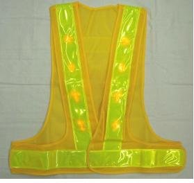赤色LEDベスト V60型(テープ幅60㎜) 黄色メッシュ×ライムイエローテープLED-YL