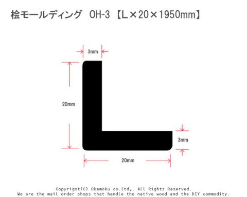 桧モールディング OH-3 【L×20×1950mm】1本入り<O>