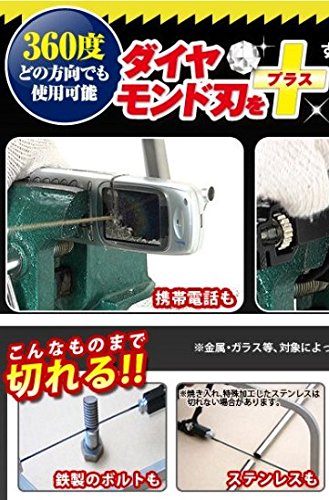 - 材質:[本体]ボディー…ステンレス、握り手…アルミニウム(黒色部分)、ポリプロピレン(オレンジ色部分)、ナット…亜鉛、刃止め…亜鉛、タングステンローラー…タングステンカーバイト [刃]糸ノコ…ハイカーボンスチール、平ノコ…スチール、ダイヤモンド刃…工業用ダイヤモンド(パウダー)、スチール