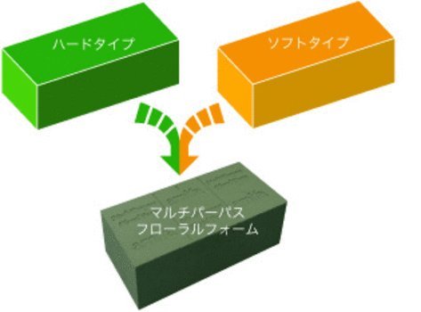フローラルフォームはこれまで、アレンジの種類によって大きな生花アレンジ用のハードタイプと プリザーブドフラワー等の細くて柔らかいもの用にソフトタイプと、それぞれに合わせた形で 使用をしていましたが、このマルチフローラルフォームは、生花・プリザーブド・造花・ドライと いずれのアレンジにも使いやすい適度な硬さと密度を実現した、 プロのフローリストの業務効率化に貢献する為に進化をとげたフローラルフォームです。 アレンジの目的を選ばないフォームという使い勝手を最大限にこだわることで、 コスト削減にお役立て頂けます。