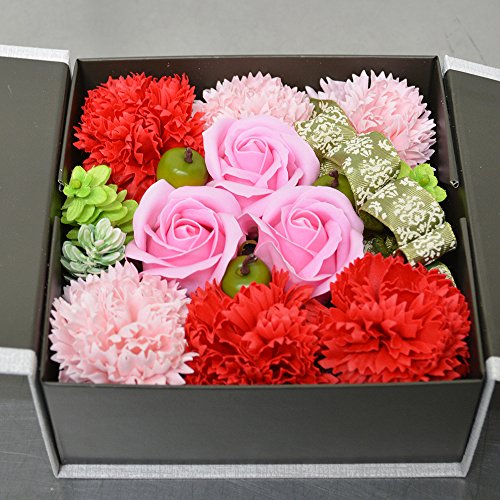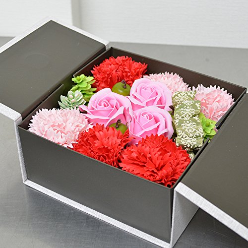 - ★商品説明★石鹸素材できたソープフラワー(バラ、カーネーション)を使用したボックスフラワーになります。ボックスはマグネット式の開閉タイプになります。