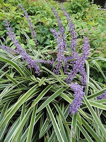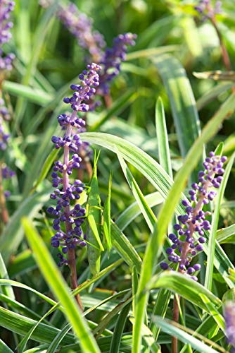 ユリ科 ヤブラン属 常緑宿根草 規格:10.5cmVP 開花期:8~9月 別名:リリオペ 縦にスッと入る斑がキレイなグランドカバー。 斑が入っているので明るい印象を与え、洋風の雰囲気によく合います。 カラーリーフとしても使われます。 夏に花茎を伸ばし穂状に紫色の小さな花をたくさん咲かせます。 花色も鮮やかなので爽やかな印象です。 葉も花も観賞価値の高い植物です。 真夏の直射日光に当たると葉が焼けてしまいますので、 樹木の根元や、半日向~半日陰に植えると葉をきれいに保てるでしょう。 日陰でも育ちますが、斑の入りがいまいちだったり花付きが悪くなります。
