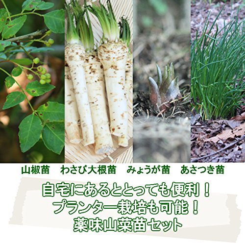 山菜苗セット:プランター栽培も可能 薬味山菜苗 各2ポットセット【サンショウ・ワサビダイコン・ミョウガ・アサツキ】【紫桜館山の花屋】