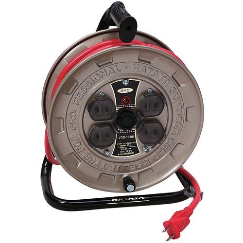 ●10m仕様の小型リールです。●小型なので事務所内の軽微な作業に便利です。●コンセント仕様形状:[[二相]]●コンセント仕様個数:4●コンセント仕様定格:2P 15A 125V●2P・3P兼用プラグ:-●通電ランプ:○●接地端子:-●定格電流(A):7●電線仕様芯数(C):2●電線仕様太さ(mm[[の2乗]]):2●電線仕様長さ(m):10●電線種:VSRF●事務所内で●OA機器に●パーティー機材に