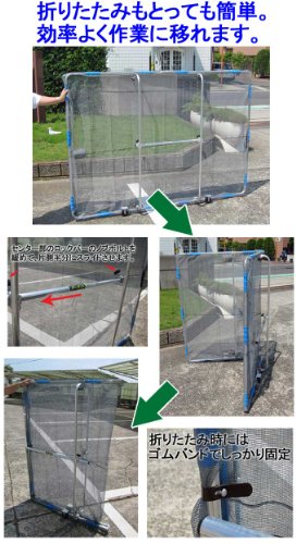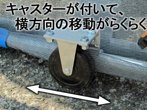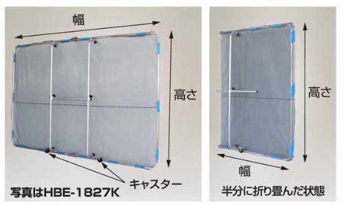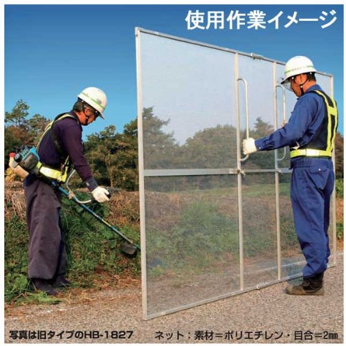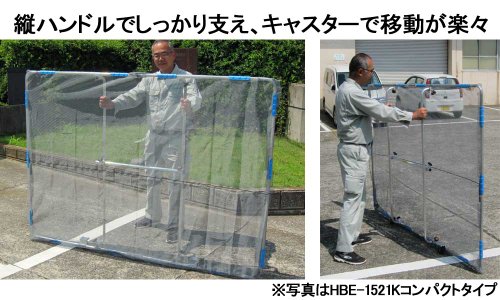 道路や公園での草刈作業の刈払機による異物の飛散を防止するガードです。 ●HBE-1521Kは幅210cm、高さ150cmのコンパクトタイプですから、狭い場所でも取り回しが良く、便利です。 ●アルミ製で軽量ですから楽に作業でき、さらに簡単に折り畳めるので持ち運びや収納に便利です。 キャスター付きですから、持ち上げなくも横へ移動出来、疲労を軽減 ●ネットは簡単に交換出来ますので、とても経済的です。