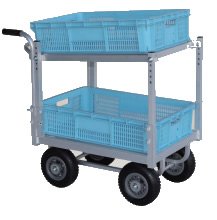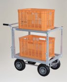 ・2段目の高さが自在に調整できますから、収穫物をコンテナに入れる際、腰への負担が軽減し作業が楽に行えます。 ・上段が開閉しますから、下段へのコンテナの出し入れがスムースです。 ・上段が傾斜状態に設定できますから収穫物が安定し傷みません。