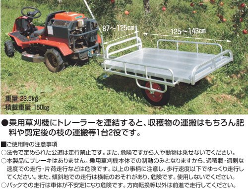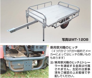 乗用草刈機の筆致とトレーラーをつなぐ金具は付属されません。注意事項をご確認の上お客様で手配をお願いいたします。