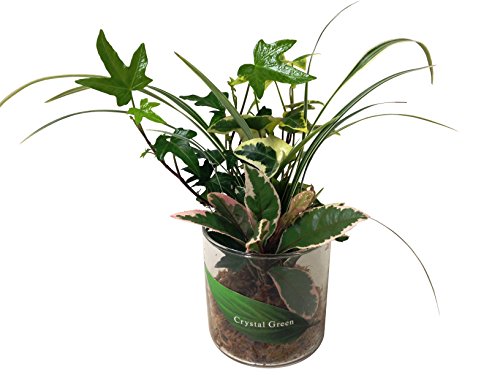 • おしゃれなガラスの器に植物3種を水苔で寄せ植えしました。植物の種類が画像と変わる場合があります。