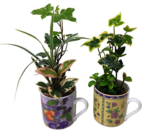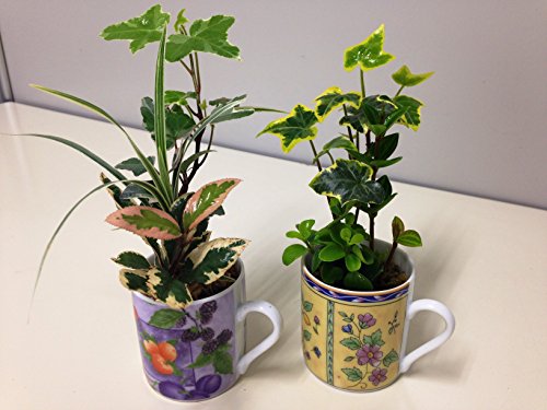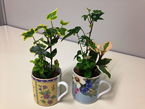 • かわいいエスプレッソカップに植物3種を水苔で植えこみました。カップの色、植物の種類が画像と変わる場合があります。