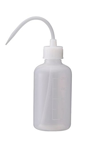 ●スタンダードな丸型の広口洗浄瓶。先端ノズルは取り外せて薬液を一気に吐出したいときに便利です。
