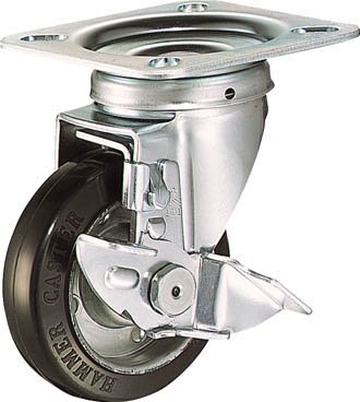 - ●取付座が大きく機械の移動用または、運搬車用として多く使用されている重量用キャスターです。