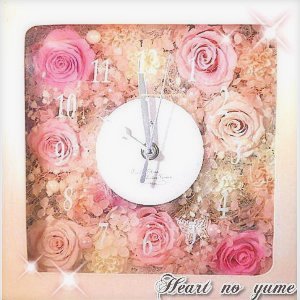 - 数量限定* 24Kゴールド+0,3カラットダイヤモンドで出来た、オリジナルダイヤモンドローズ使用。(ほんのりバラの香り付き) かわいいバタフライがアクセント♪ピンク系花時計です。花材はすべて高級品質ブランドのプリザーブドフラワー,シルキーフラワーのみ使用しております。