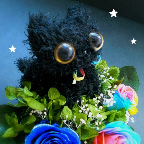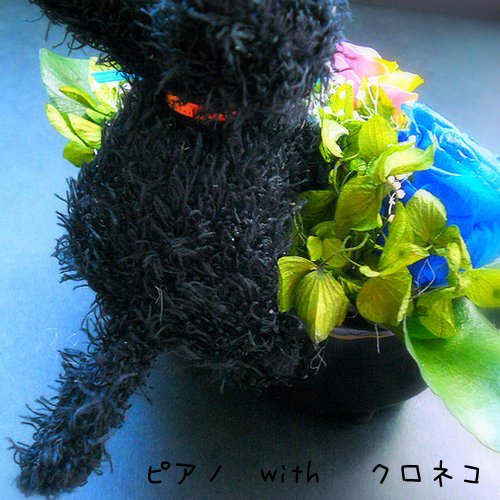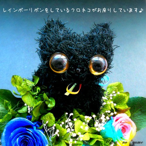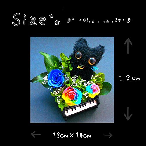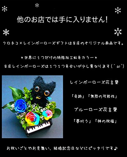 - 【24Kゴールド+0.3CTダイヤモンドで出来た、オリジナル*レインボーローズ・ブルーローズギフト】黒猫がピアノの上にちょこんとお座りしているかわいらしいフラワーギフトです♪ *枯れない夢のお花*プリザーブドフラワーレインボーローズ2輪、ダイヤモンドブルーローズの入った贅沢なピアノ型の陶器アレンジメント。