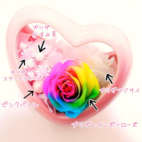 【高級プリザーブドフラワー】レインボーローズ プリザーブドフラワー ピンクプチハート 誕生日 母の日 結婚記念日 結婚祝い 卒業祝い 入学祝い 引出物 出産祝い プレゼント