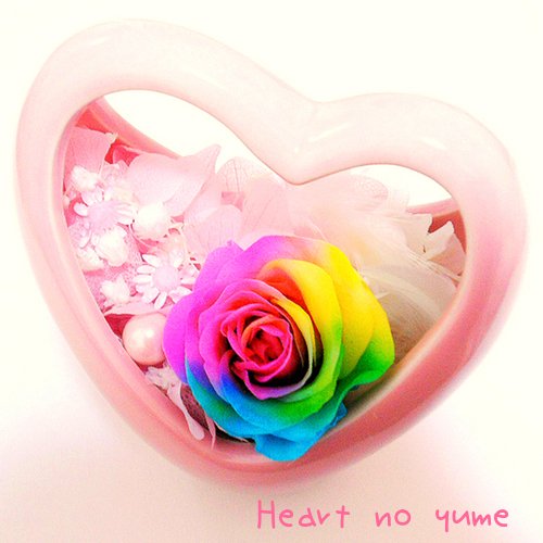 - 【24Kゴールド+0.3CTダイヤモンドで出来た、オリジナル*レインボーローズギフト】愛を表すハート型の花器にほどよく目立つサイズのレインボーローズを使用して超キュートに仕上げています♪ 送料600円(中国、四国、九州900円)