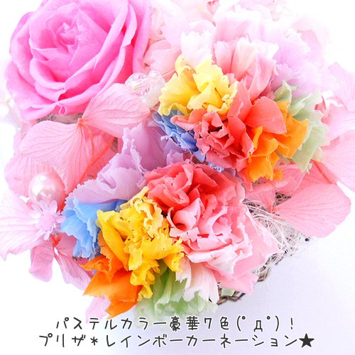 パステルレインボーカーネーション&キラキラローズ プリザーブドフラワー 誕生日 母の日 結婚記念日 結婚祝い 卒業祝い 入学祝い プレゼント