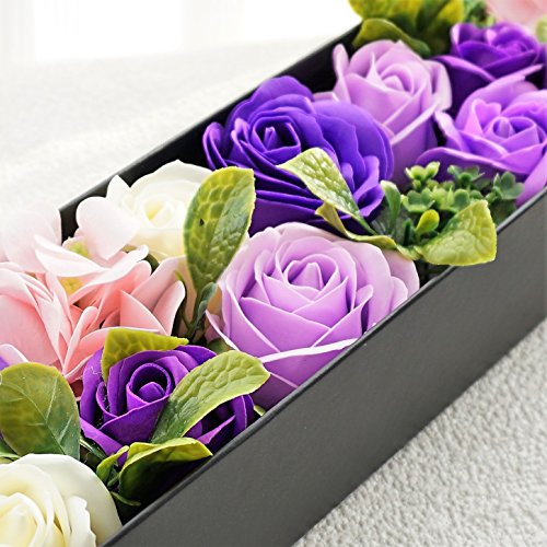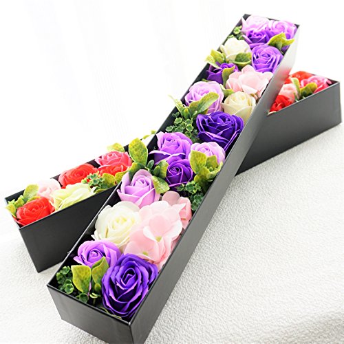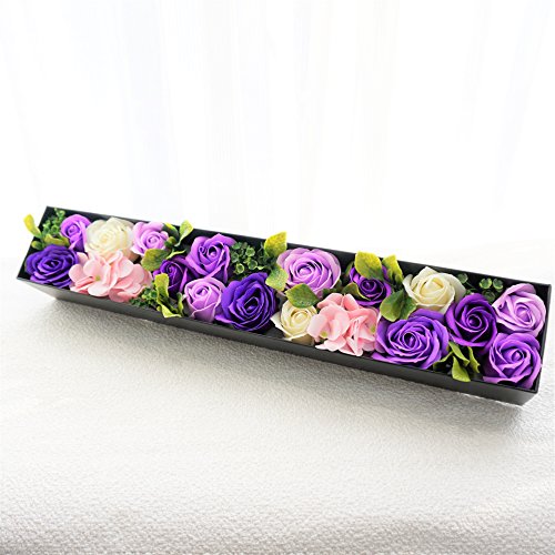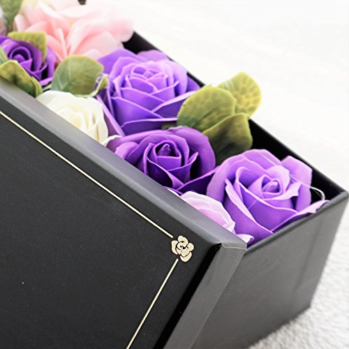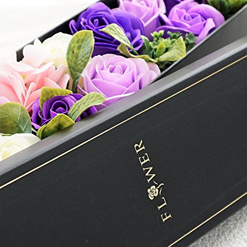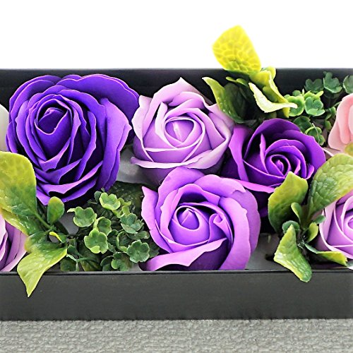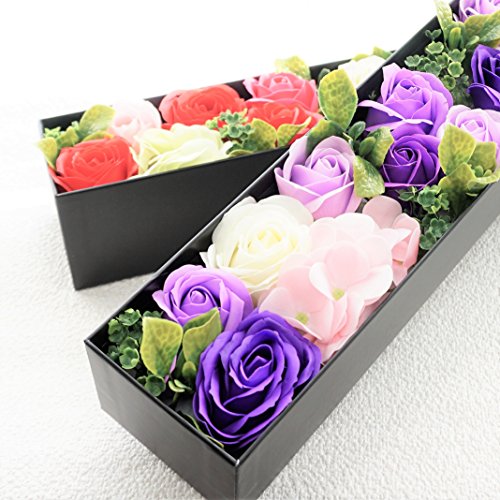 BIOBIO ローズBOXスリム フレグランスソープフラワー ふた付きボックス お祝い 記念日 お見舞い バレンタインデー ホワイトデー 母の日 (パープル)