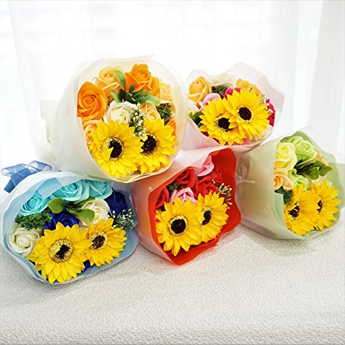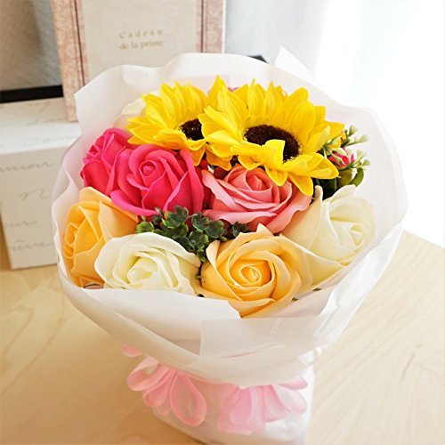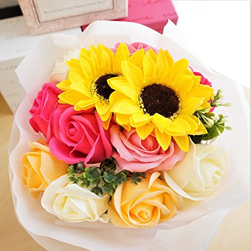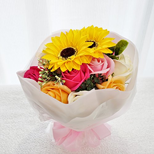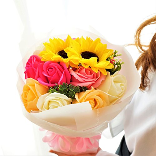 - Newひまわりブーケ ローズ10輪、ひまわり2輪の新しいアレンジブーケが販売開始となりました。他店にはないこだわりのアレンジです 色鮮やかなソープフラワーをふんだんにアレンジ、石鹸の香り漂うソープフラワーをアレンジしました。衛生上持ち込みができない施設(病院)などのお見舞いやプレゼントに最適です。