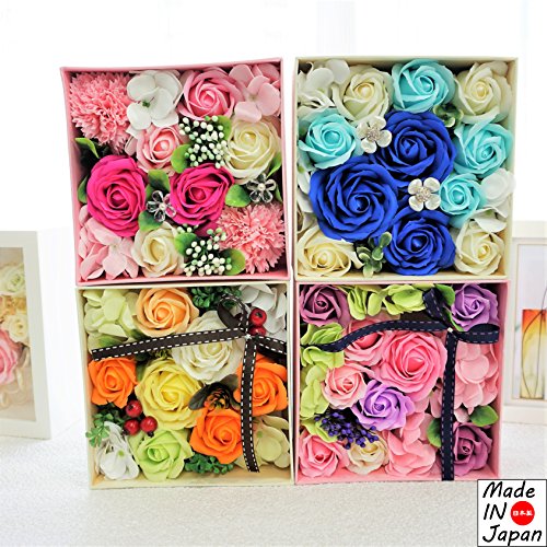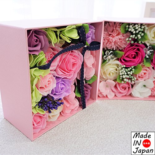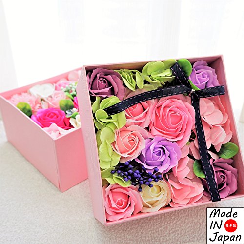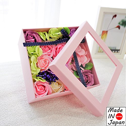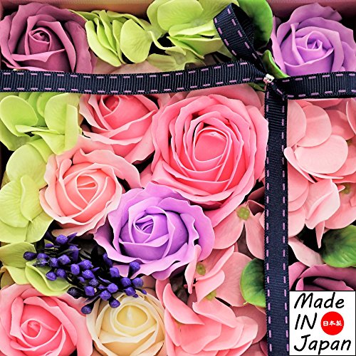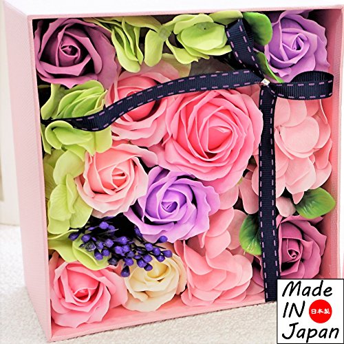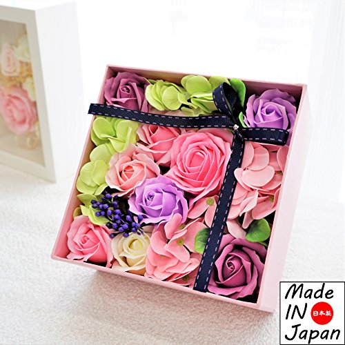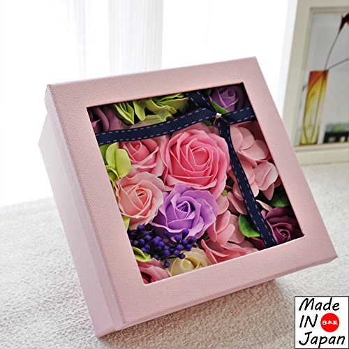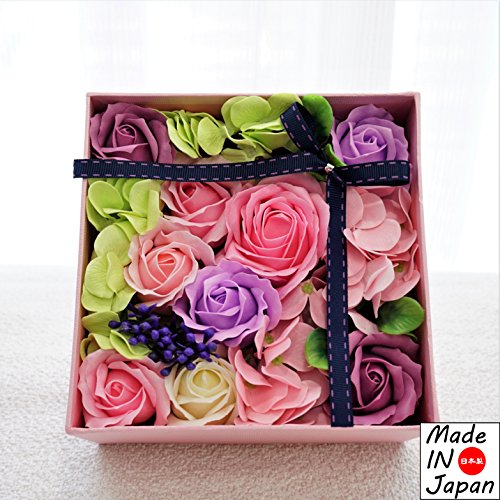 Made in japan BIOフレグランスソープフラワー 窓付きスクエアボックスM 日本デザイン お祝い 記念日 お見舞い ホワイトデー 母の日 父の日 (パープル)