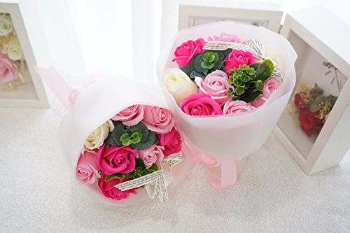 - 人気のミディローズブーケに新色登場! ローズ9輪のボリューム感あるアレンジブーケ。 他店にはないこだわりのアレンジです。 色鮮やかなソープフラワーをふんだんにアレンジ、石鹸の香り漂うソープフラワーをアレンジしました。衛生上持ち込みができない施設(病院)などのお見舞いやプレゼントに最適です。