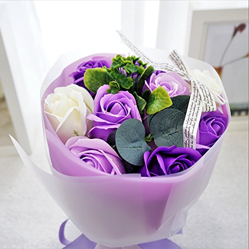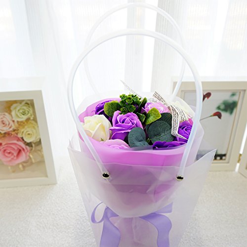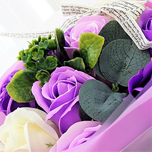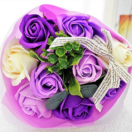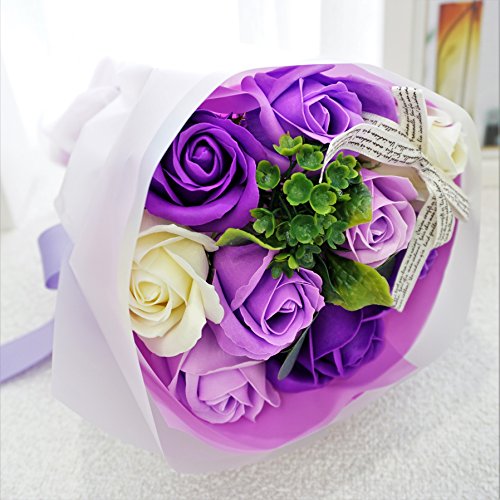 【Amazon.jp限定】BIO ミディローズブーケ フレグランスソープフラワー ローズ9輪 定番商品 クリアバック・ギフトボックス付 お祝い 記念日 お見舞い バレンタインデー ホワイトデー 母の日 (パープル)