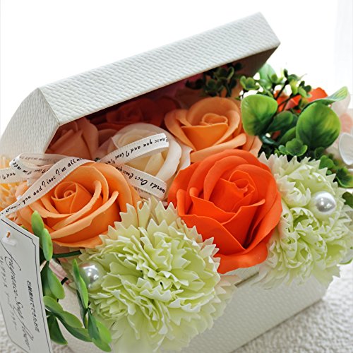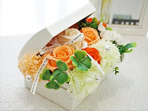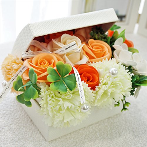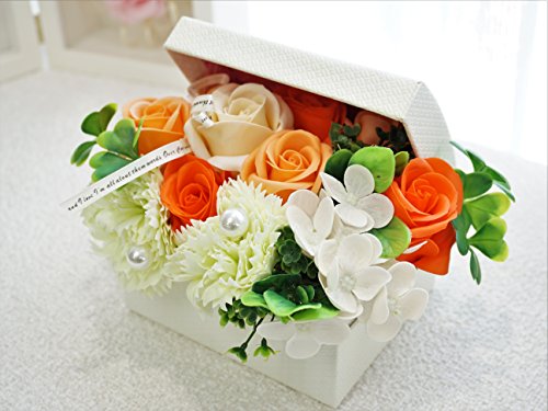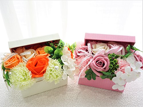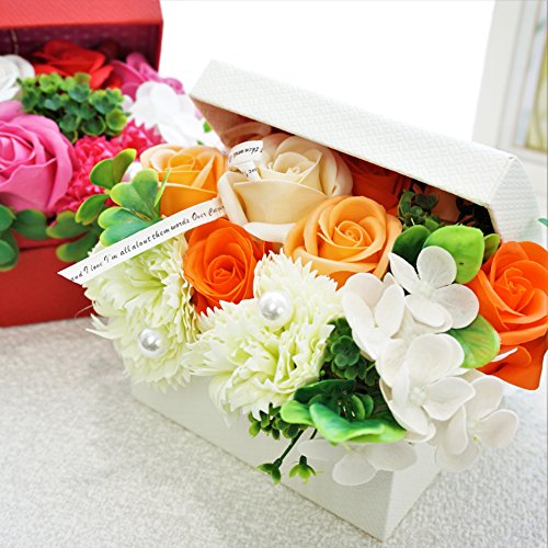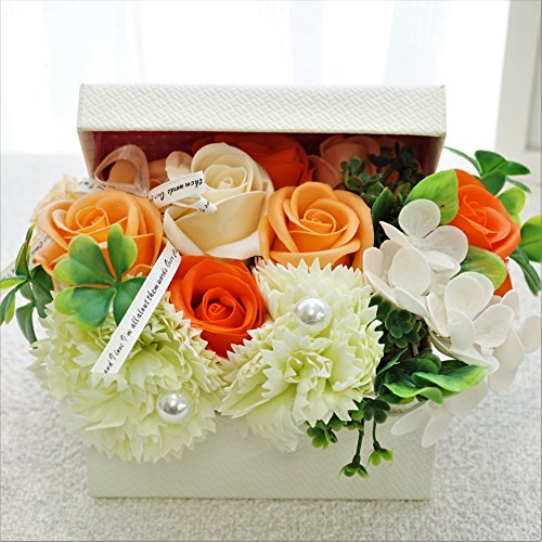 BIOフレグランスソープフラワー オープンボックス フタ付ボックス お祝い 記念日 お見舞い 母の日 ホワイトデー バレンタインデー (オレンジ, ミニ)