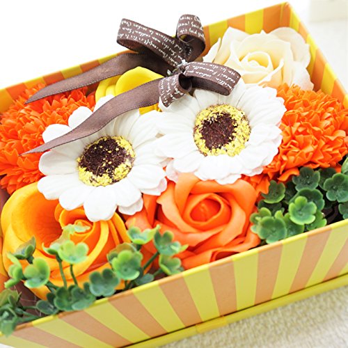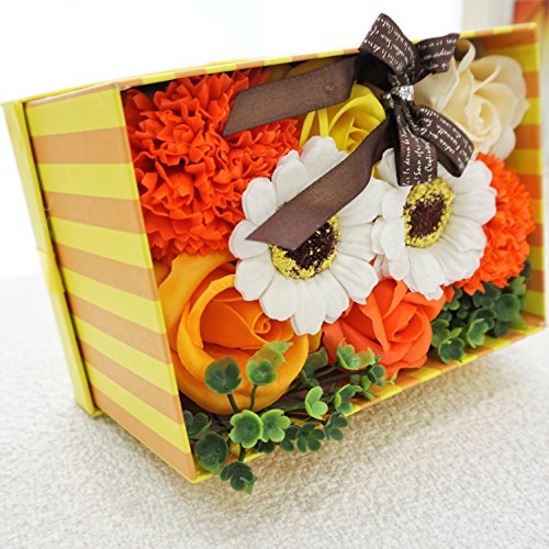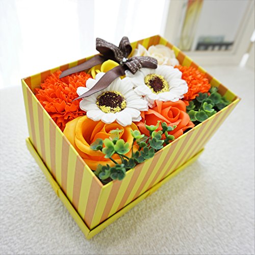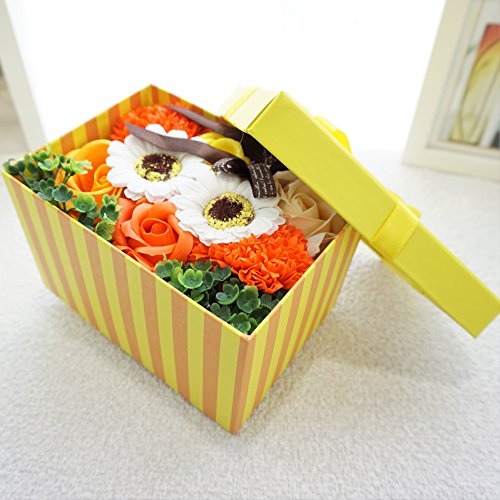 BIOフレグランスソープフラワー ストライプミニボックス フタ付ボックス お祝い 記念日 お見舞い 母の日 ホワイトデー バレンタインデー (オレンジ)