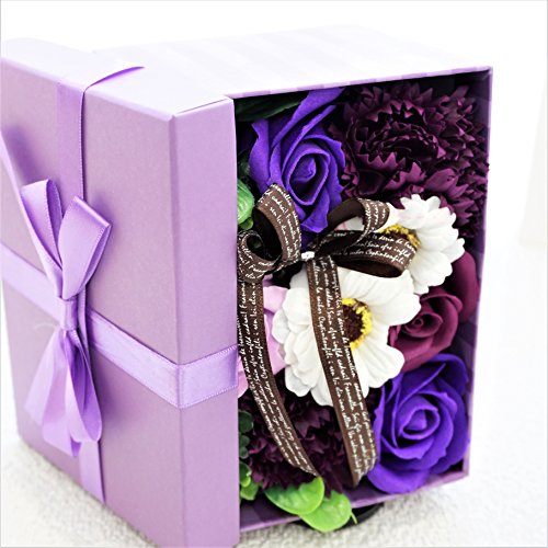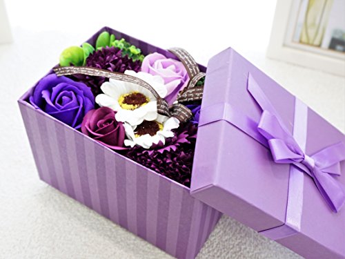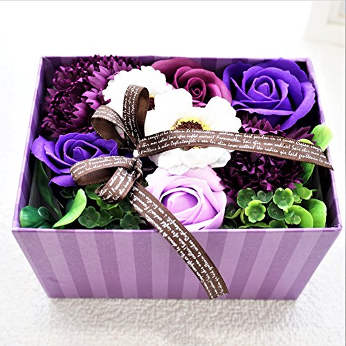 BIOフレグランスソープフラワー ストライプミニボックス フタ付ボックス お祝い 記念日 お見舞い 母の日 ホワイトデー バレンタインデー (パープル)