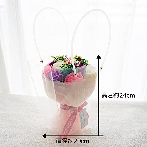 BIOフレグランスソープフラワー Newローズブーケ クリアバック・ギフトボックス付 お祝い 記念日 お見舞い バレンタインデー ホワイトデー 母の日 (エレガントピンク【京小風呂敷セット】)