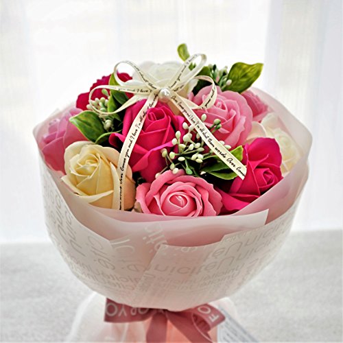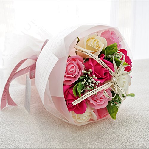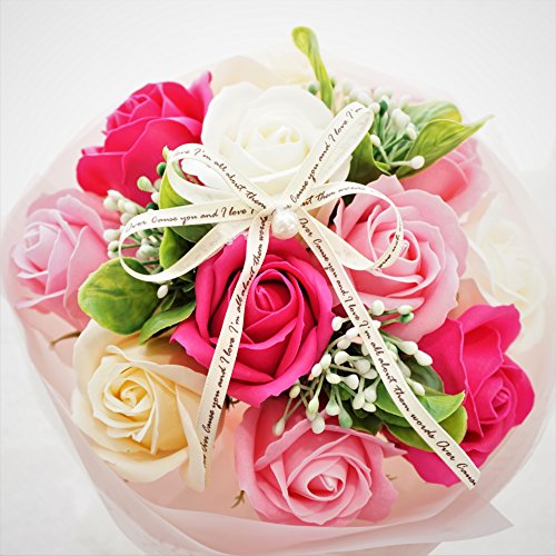 BIOフレグランスソープフラワー Newローズブーケ クリアバック・ギフトボックス付 お祝い 記念日 お見舞い バレンタインデー ホワイトデー 母の日 (ピンク)